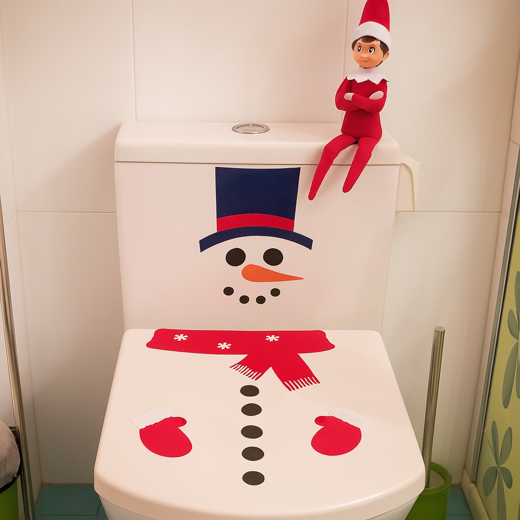 Esta mañana, el elfo nos ha sorprendido con el váter transformado en un muñeco de nieve, completo con sombrero, bufanda y hasta manoplas. ¡Qué estilo tan navideño! Parece que el elfo se ha tomado muy en serio la decoración navideña.