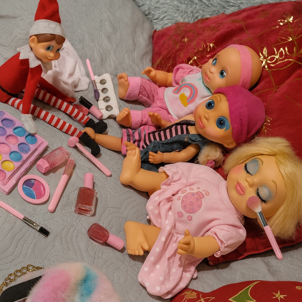 El elfo ha hecho nuevos amigos y ya se ha tomado la libertad de coger el maquillaje de otras niñas muñecas y maquillarlas a su gusto. El peque se sorprenderá al ver que el elfo ha hecho amigos y se lo está pasando en grande.